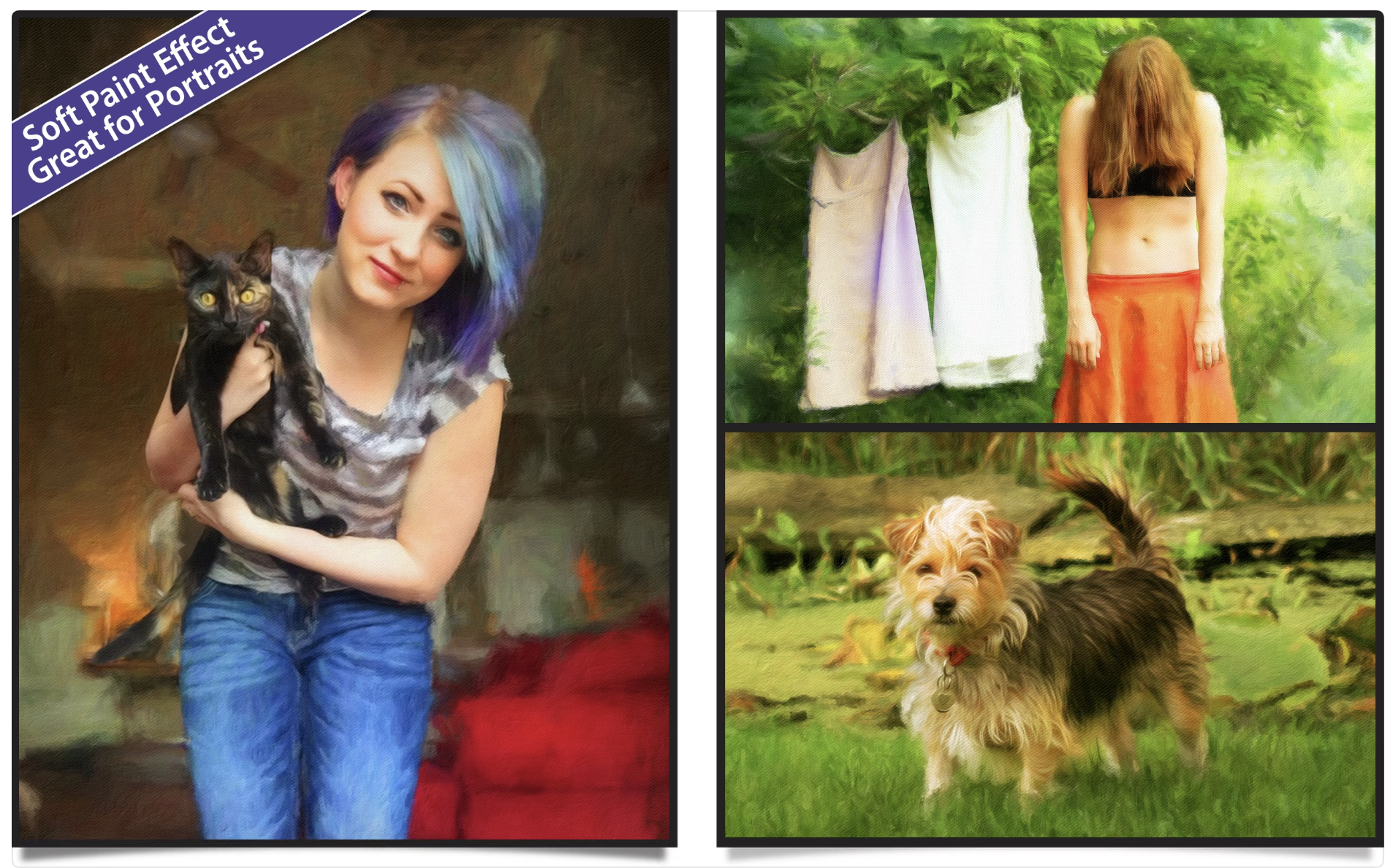 包括:图层,刷子,软漆,背景油漆,岁画,画边和三个印象派油漆效果:阿拉Prima,恩普莱因空气和Tache油漆风格。
