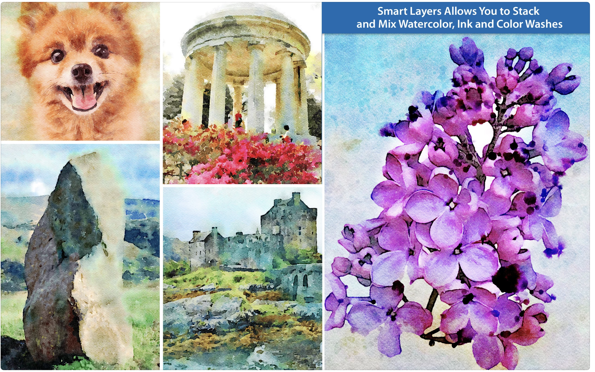 使用“ Paint Layers”,您可以通过堆叠水彩图层,混合颜色清洗和纹理以及在细节上进行笔刷来创建美丽而独特的水彩画。不需要艺术技能!完全控制设置,将放置在Watercolor Studio中的每张照片自动转换为水彩画。完全控制油漆在纸上的作用虽然很棒,但是在实验过程中会出现一些最美丽的效果。所以玩得开心,不要太小心。您会惊讶于您将获得的一些画作。