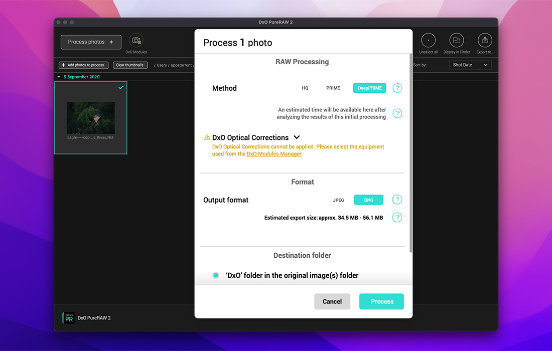 DxO PureRAW Mac版是发布了,该软件采用了智能技术,以解决影响所有RAW文件的七个问题:去马赛克,降噪,波纹,变形,色差,不想要的渐晕,以及缺乏清晰度,校正技术在 Adobe Photoshop、Lightroom 或其他软件中润饰之前创建更好的 RAW 文件。