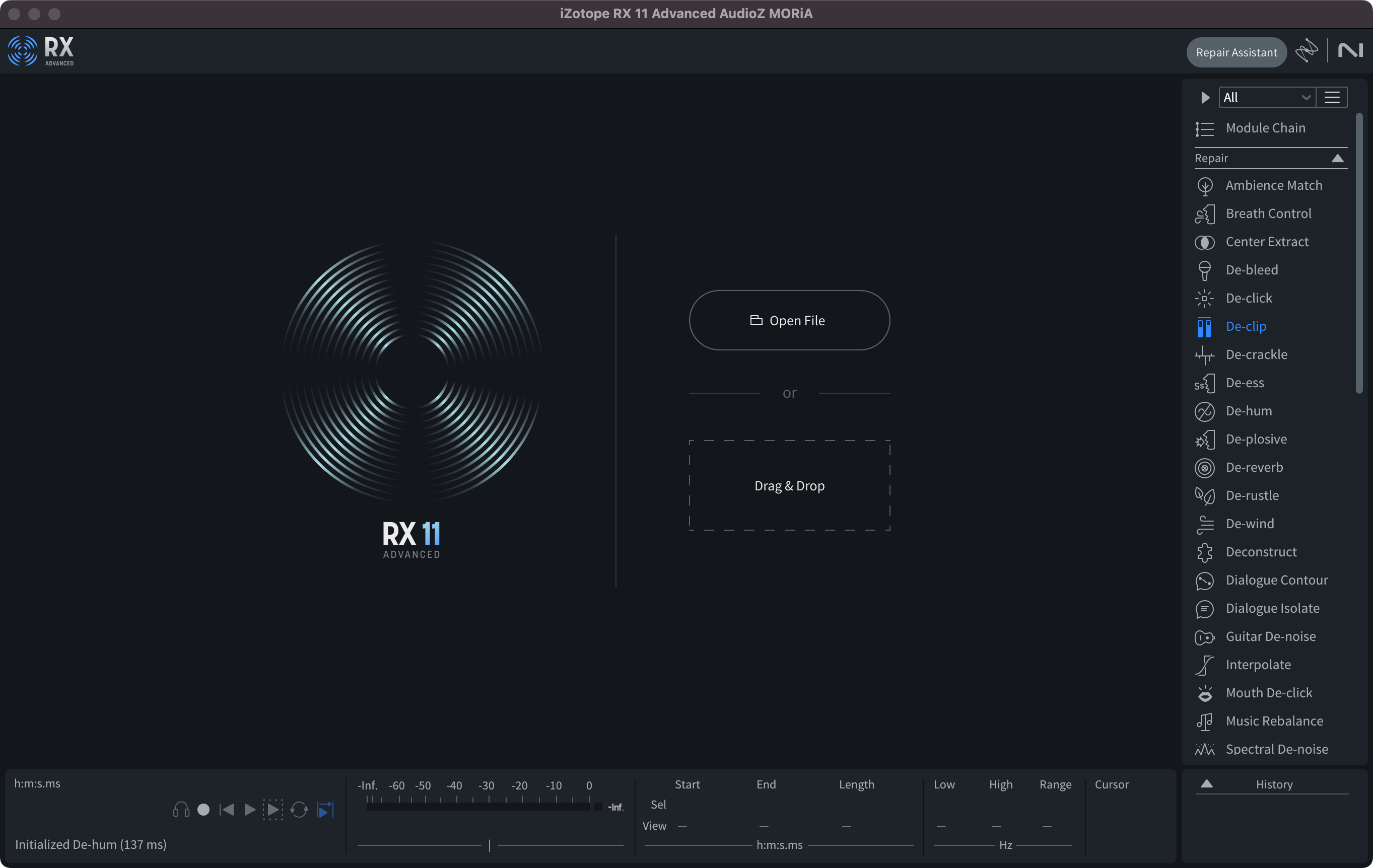 RX 带有一套通用的插件和应用程序模块来处理嗡嗡声、削波、噪音等。