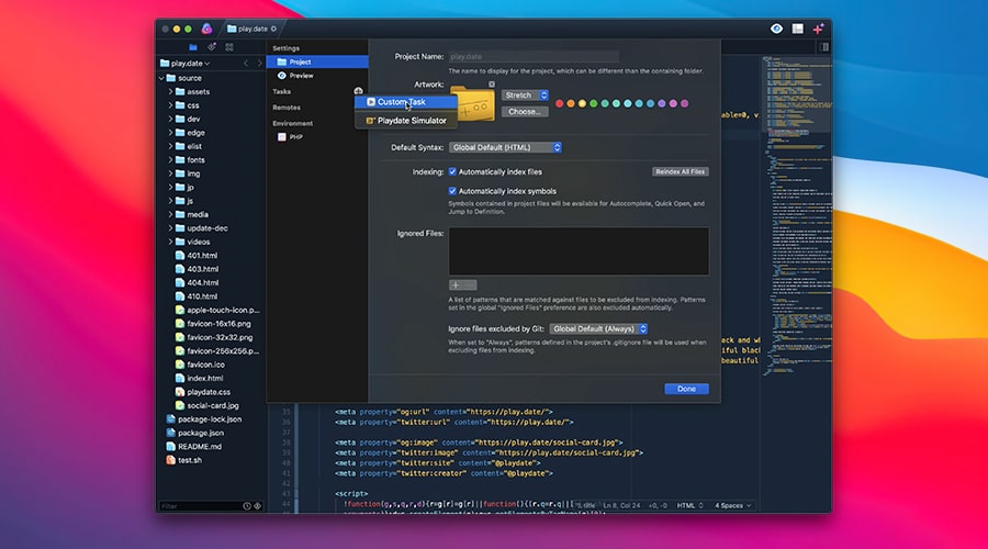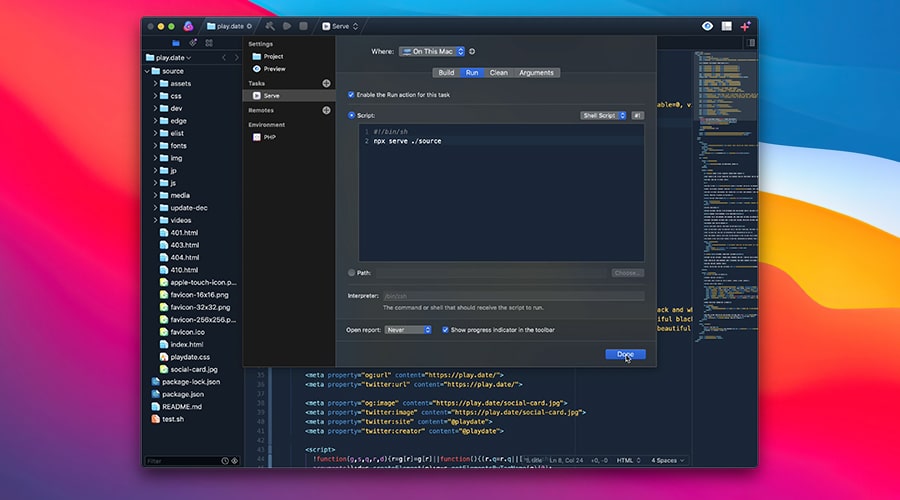 您可以轻松地为项目创建构建和运行任务。我们在Coda中没有它们,但是男孩,现在我们有了它们。它们是可以随时通过工具栏按钮或键盘快捷键触发的自定义脚本。
