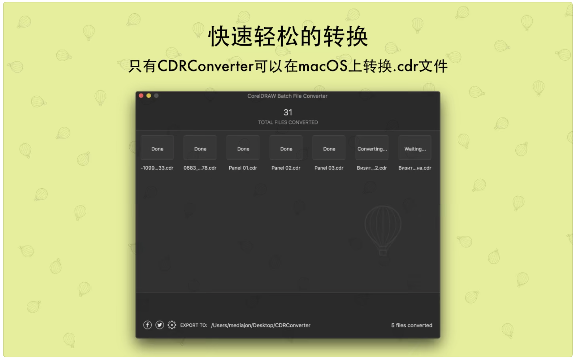 CDRConverter允许您在macOS上将单个或多个CorelDRAW文件转换为.pdf。正如每个设计师所知,CorelDRAW在版本11之后就停止了。现在我们开发了一个简单的应用程序,可以将macOS上的CorelDRAV文件转换为Vector PDF格式文件。现在可以在macOS上打开CorelDRAW格式的文件。