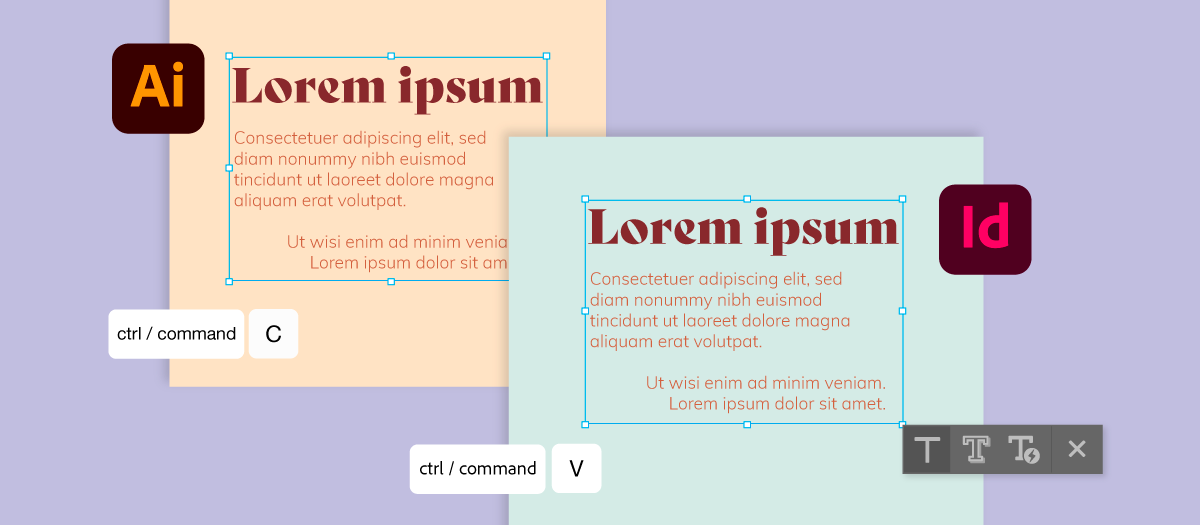 现在可在 InDesign 与 Illustrator 之间高效地复制粘贴文本,同时保持格式和已应用的效果。