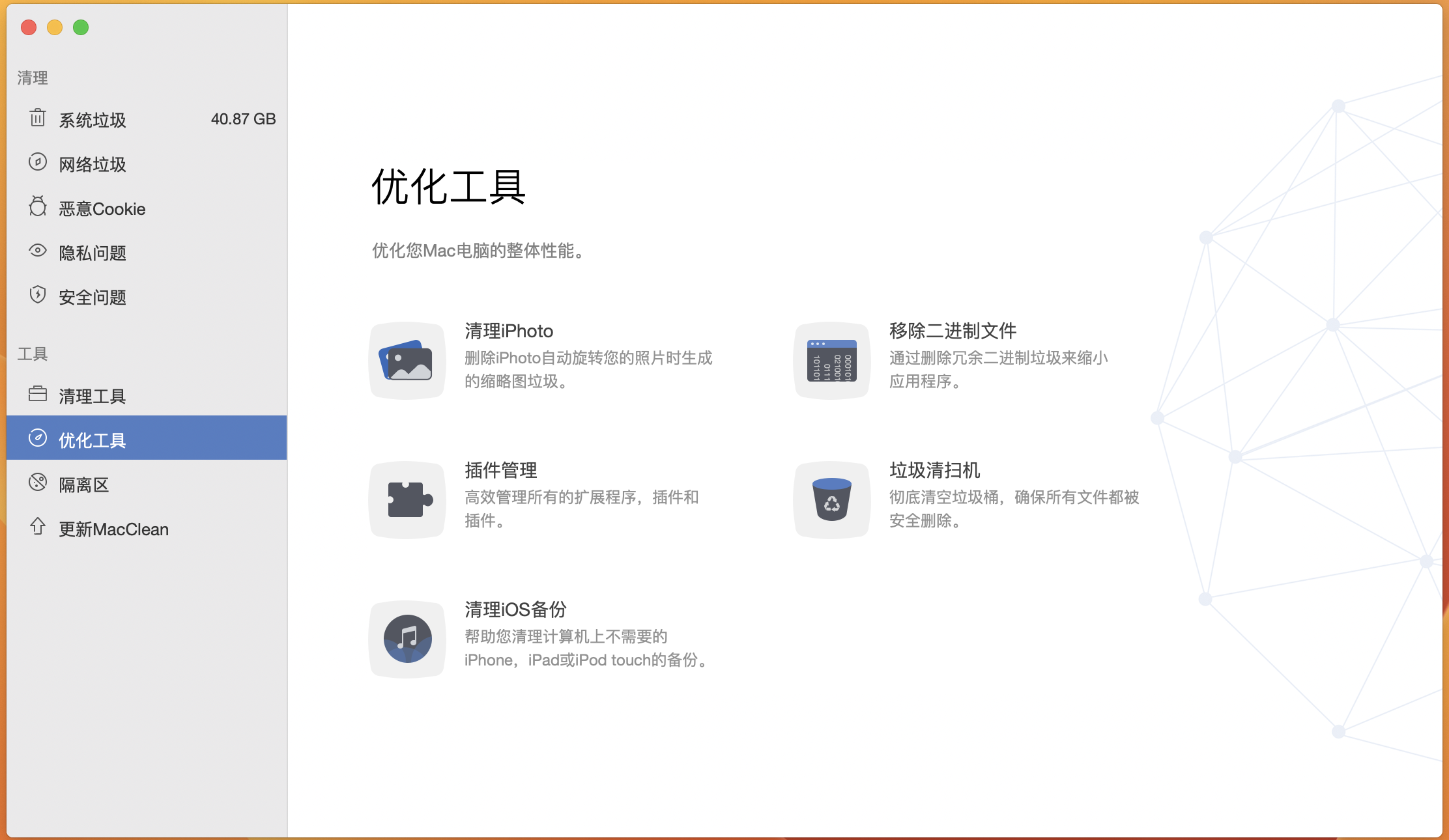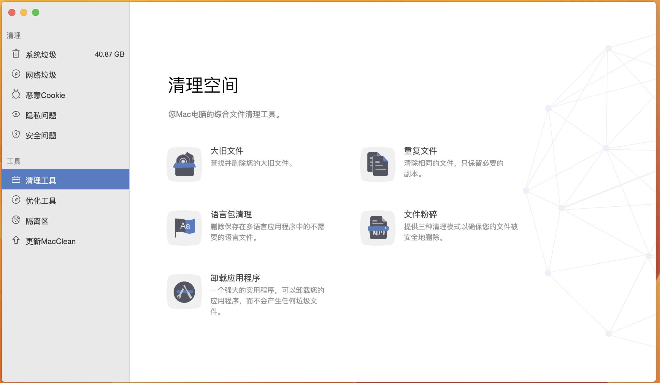 MacClean 3 for Mac令人印象深刻的Mac清洁功能和工具,为您喜爱的方式量身定制。MacClean 3采用尖端技术和服务,让您的Mac保持干净,快速和安全。除了您熟悉的Mac清洁和操作系统维护功能外,它现在还具有隐私和安全保护功能,可为您提供最先进的Mac体验。