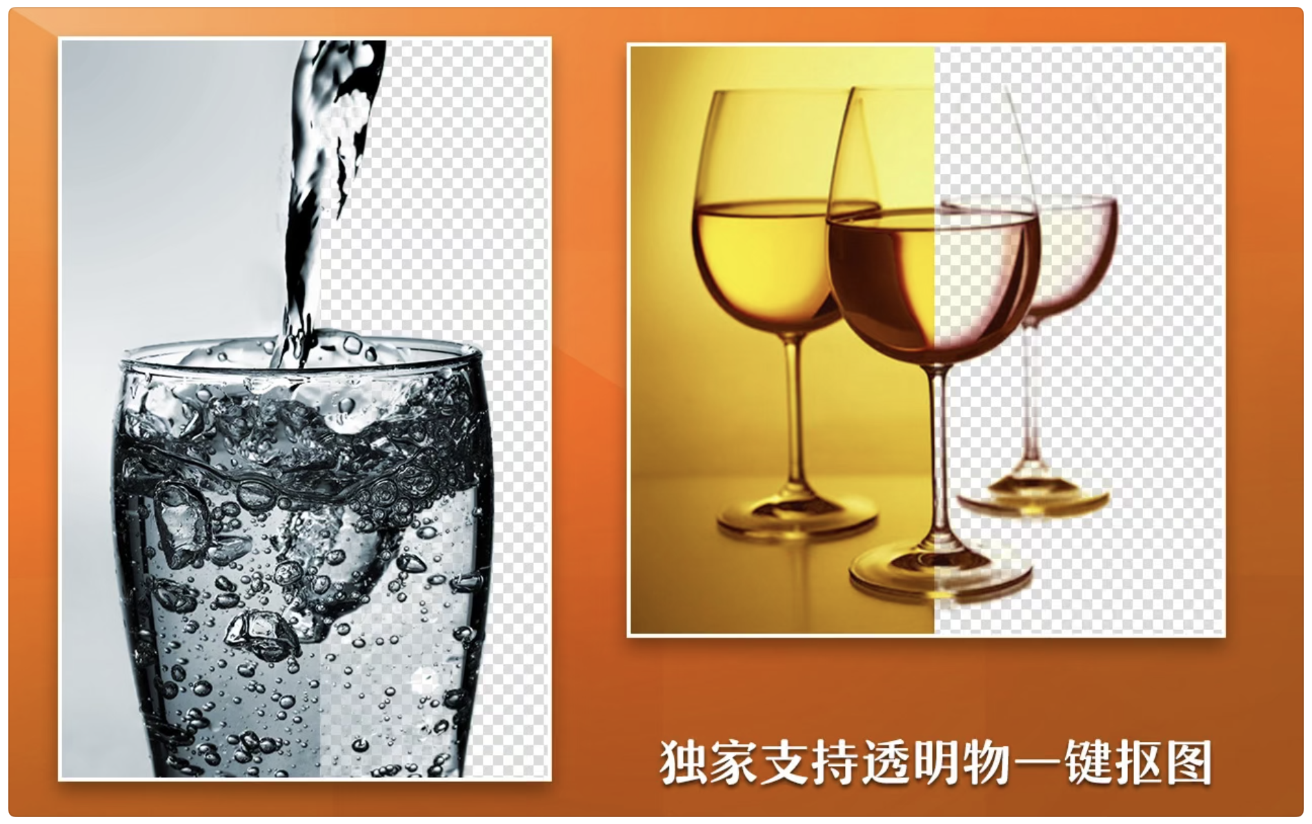 3. 快速精准地去除图片中的复杂背景。提供两种抠图方式:快速抠图和精致抠图。