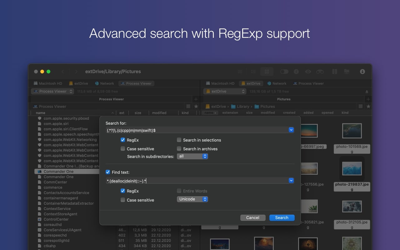 除了文件管理器的基本功能外,Commander One PRO 还包括各种有用的功能来促进和优化您的工作流程。