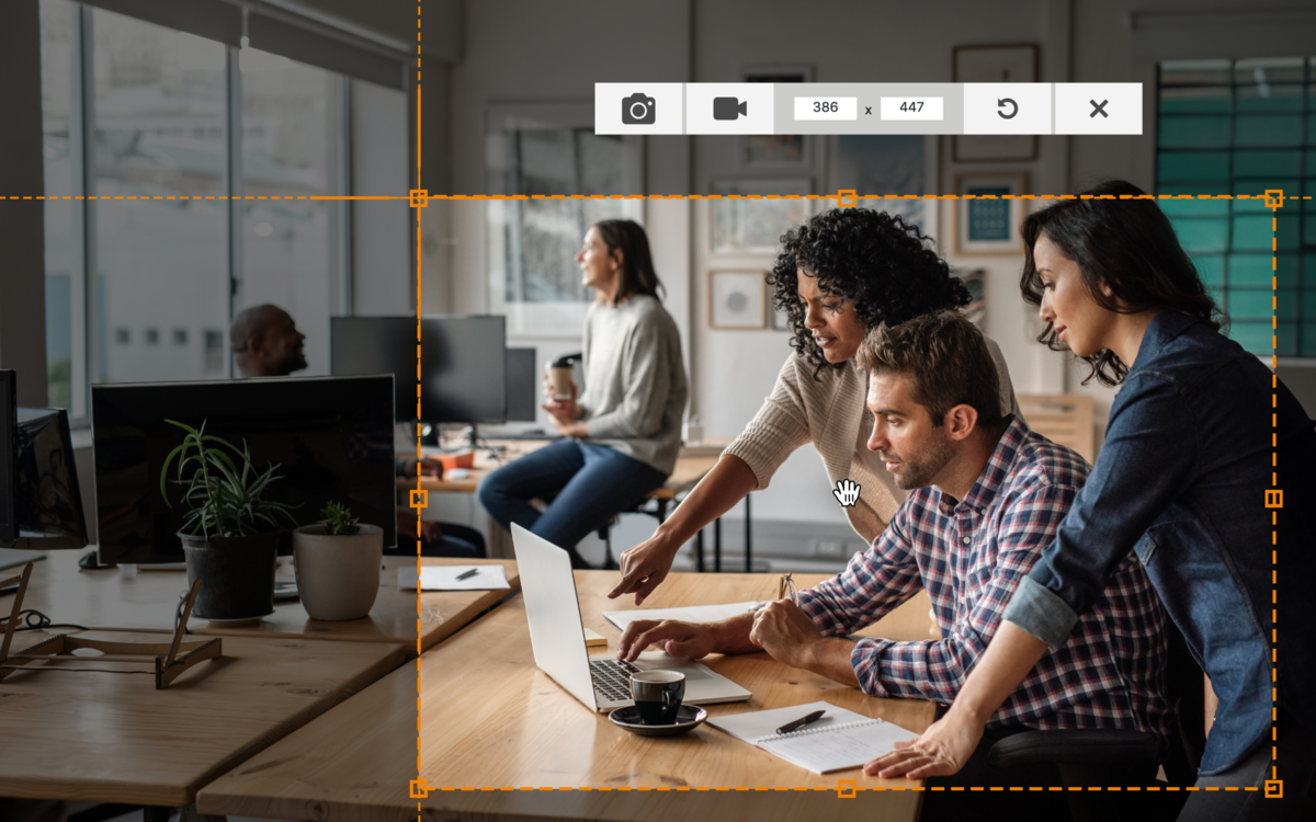 Snagit 的屏幕录像机可让您快速记录自己的工作步骤。或者从录制的视频中抓取单个帧。将您的视频文件保存为 mp4 或动画 GIF。