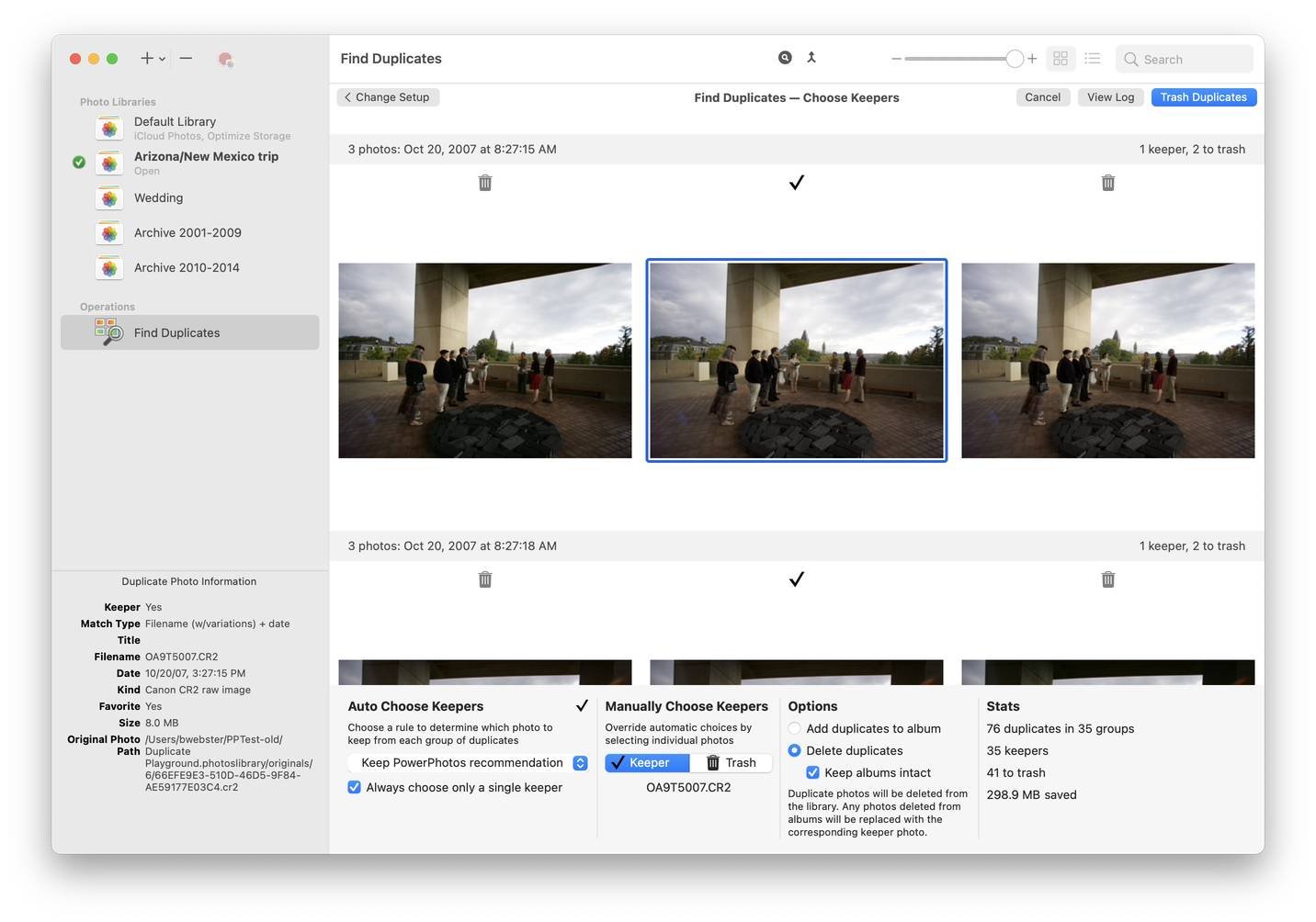 PowerPhotos 还支持一次搜索所有图库以帮助您查找特定照片。如果您使用 iCloud 照片库将照片同步到其他设备,它可以帮助分解图库并节省 iCloud 存储成本。使用一个图库来保留较小的收藏夹,您可以将其同步到 iCloud,同时将大部分照片保存在单独的图库中,这样它们就不会占用 iCloud 空间。PowerPhotos 可以分析您的库中是否有重复的照片,并排显示它们,并让您能够摆脱不再需要的额外照片副本。