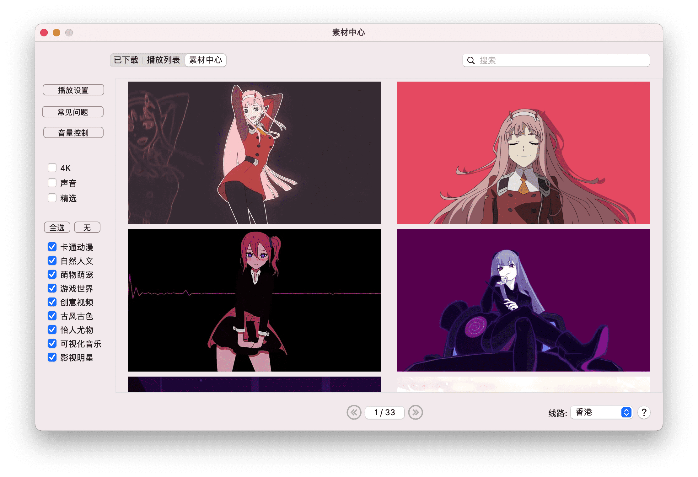 – 视频素材分类:4K超清、卡通动漫、自然人文、萌宠萌物、游戏世界、创意视频、怡人尤物、古风古色、影视明星等等,总有适合你的风格。