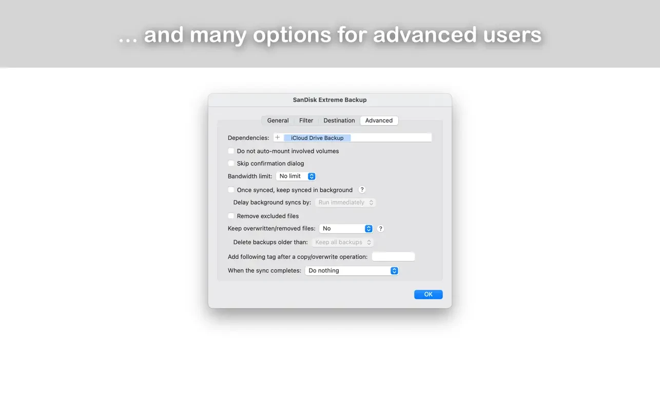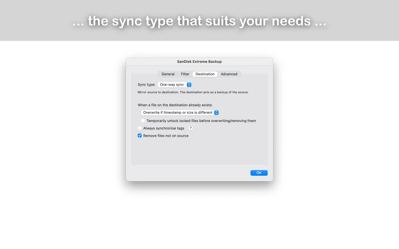 SyncTime有很多功能,但使用起来却非常简单。从手动,预定或完全自动同步,到后台同步,双向同步和复杂的排除过滤器,您将能够完全按照自己的想象来设置同步。