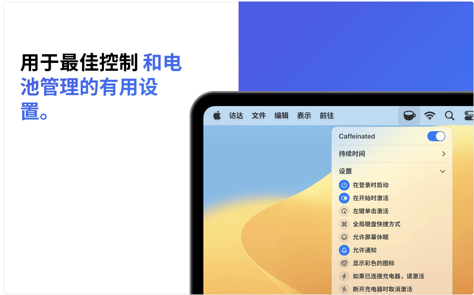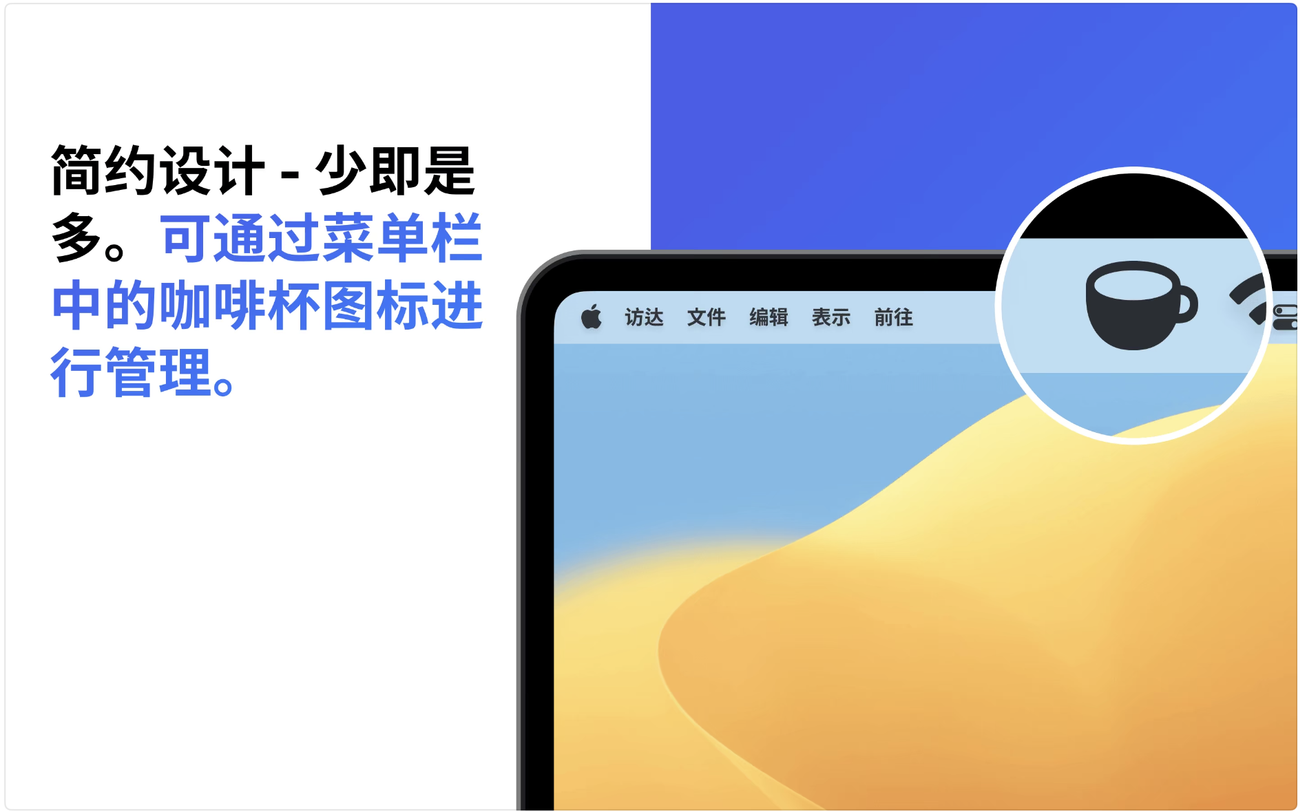 -可通过菜单栏中的咖啡杯图标进行管理