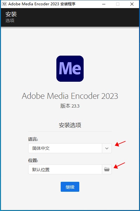 3、自定义安装位置,选择语言,点击继续(如下图)