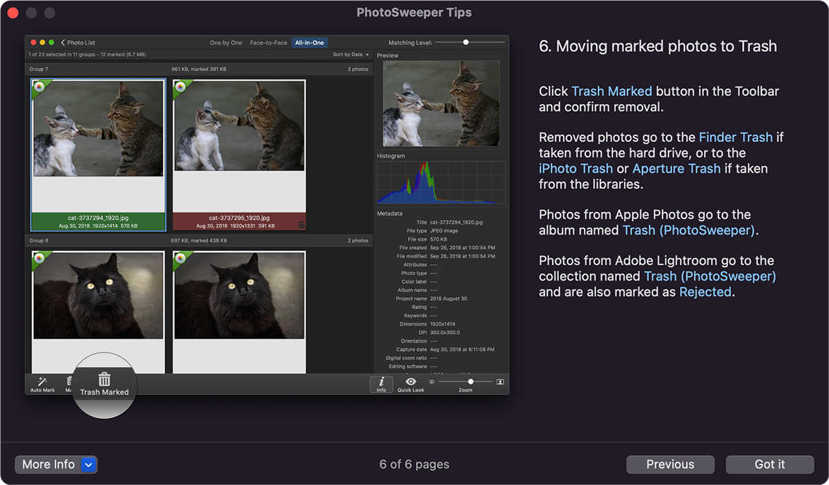 PhotoSweeper也是一个最新的照片浏览器,内置了按元数据搜索照片、快速查看预览、带有详细照片描述的 “信息” 面板,包括直方图和图像元数据(EXIF、IPTC等)。