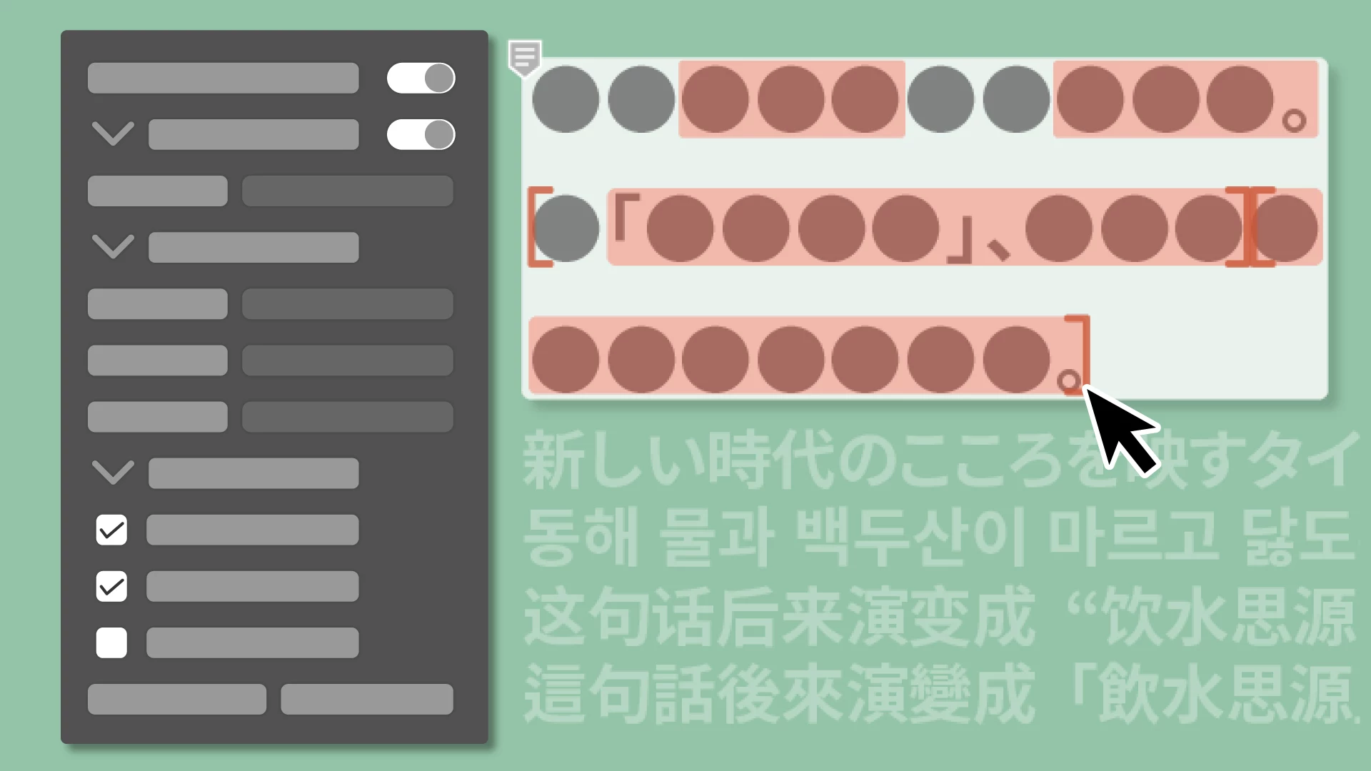 Reflow 查看器简化了查看、分析和更新东亚语言文本布局的过程。当您打开在旧版 Illustrator 中创建的文档时,它会警告您有关文本布局的任何潜在更改。您可以选择更新布局或保留原始布局。