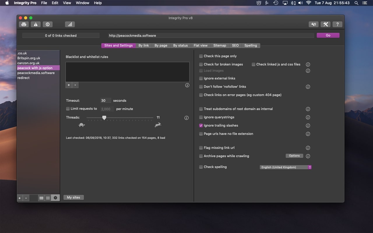 Integrity Pro 添加了 SEO 和拼写检查功能。显示警告列表,例如缺少标题/描述、不完整的内容、充满关键字的页面、没有替代文本的图像、混合内容、重定向链等。