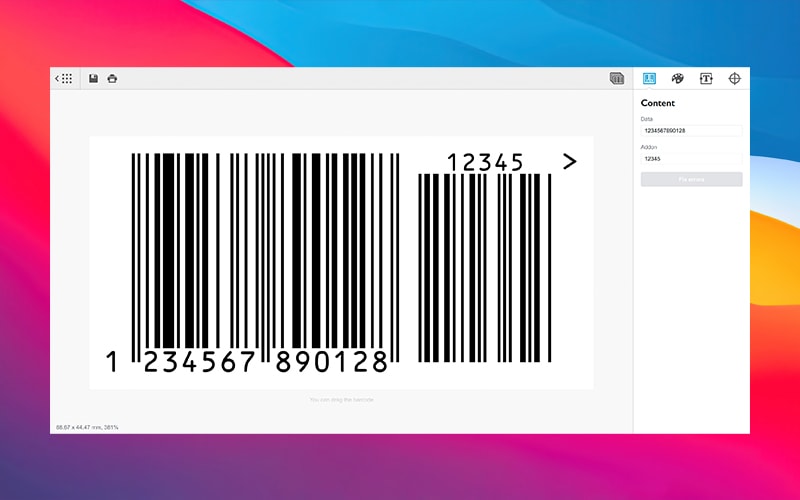 Barcode 是一款专业的条码制作应用程序,支持所有主要类型的条码。与其他同类软件相比,Barcode 提供了专色和条宽调整支持等专业功能。它还提供了许多您在其他任何地方都找不到的条码自定义选项