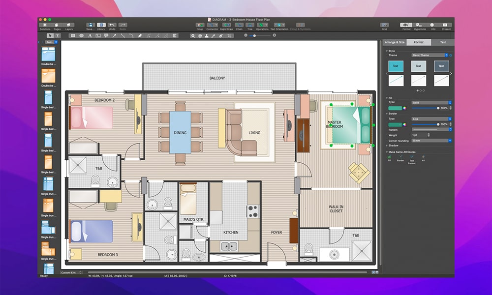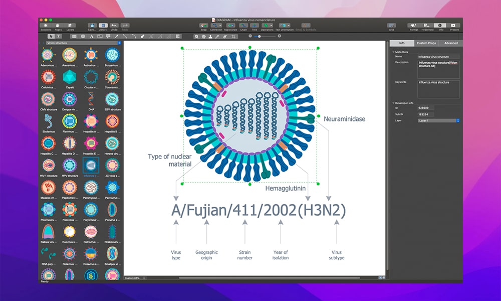 包含一组矢量绘图工具、一组特定领域的模板、示例、现成的对象和收集在专题库中的剪贴画,以及内置的演示模式。