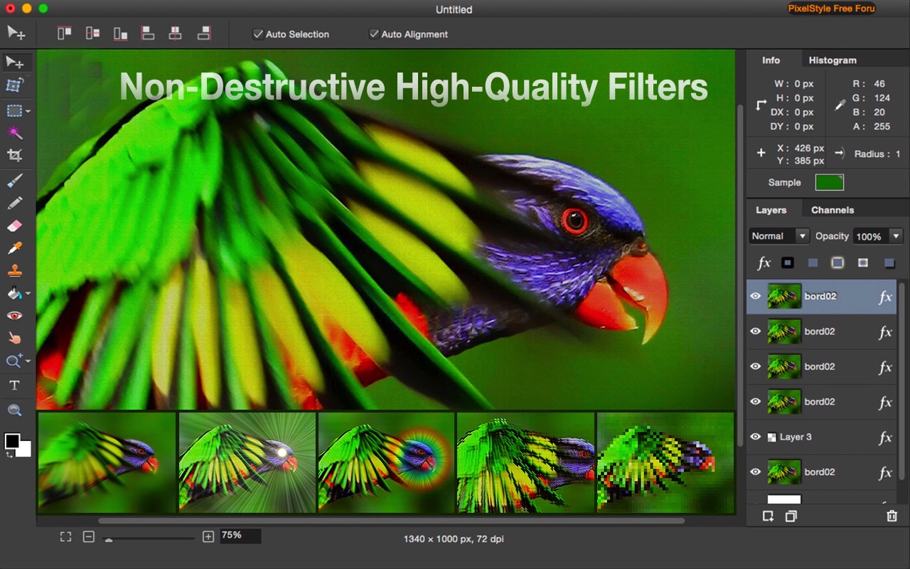 您将从 PixelStyle 照片编辑器中获得许多精彩的功能: