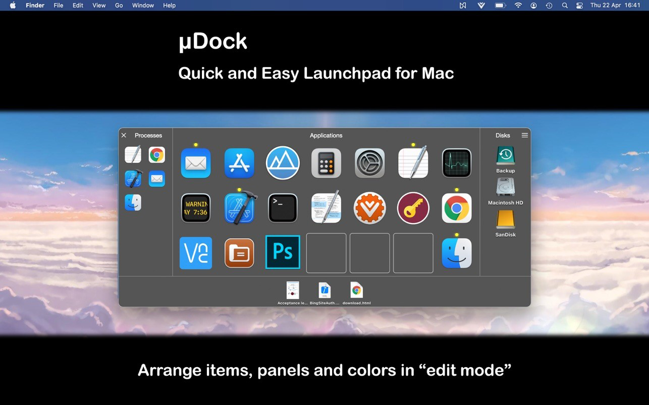 定义热键并将其与应用程序、文档和文件夹结合起来,使用键盘快捷键立即打开您喜欢的文件。μDock 是适用于 Mac 的高级且可配置的扩展坞。