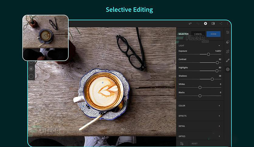 Android 手机和平板电脑的 Adob​​e Lightroom 照片和视频编辑器高级 MOD 版无广告无广告 APK。Lightroom 还提供强大的高级产品和高级功能,让您的摄影更上一层楼。
