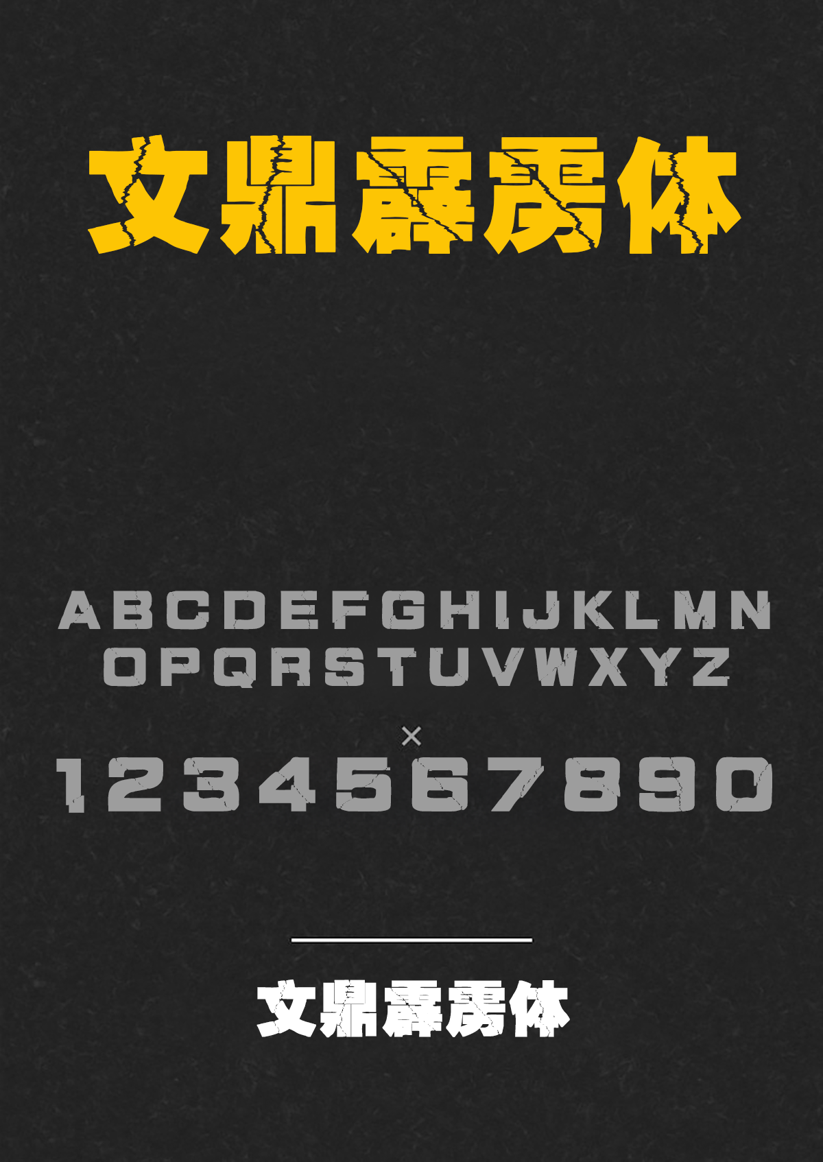 这也是一款裂痕更为显著的文鼎裂痕字体,合适用在一些必须小的字体大小,但又要加粗的状况,由于裂痕字体假如一加粗他的裂痕就看不见了,由于这一的裂痕大一些,因此看上去更为显著。