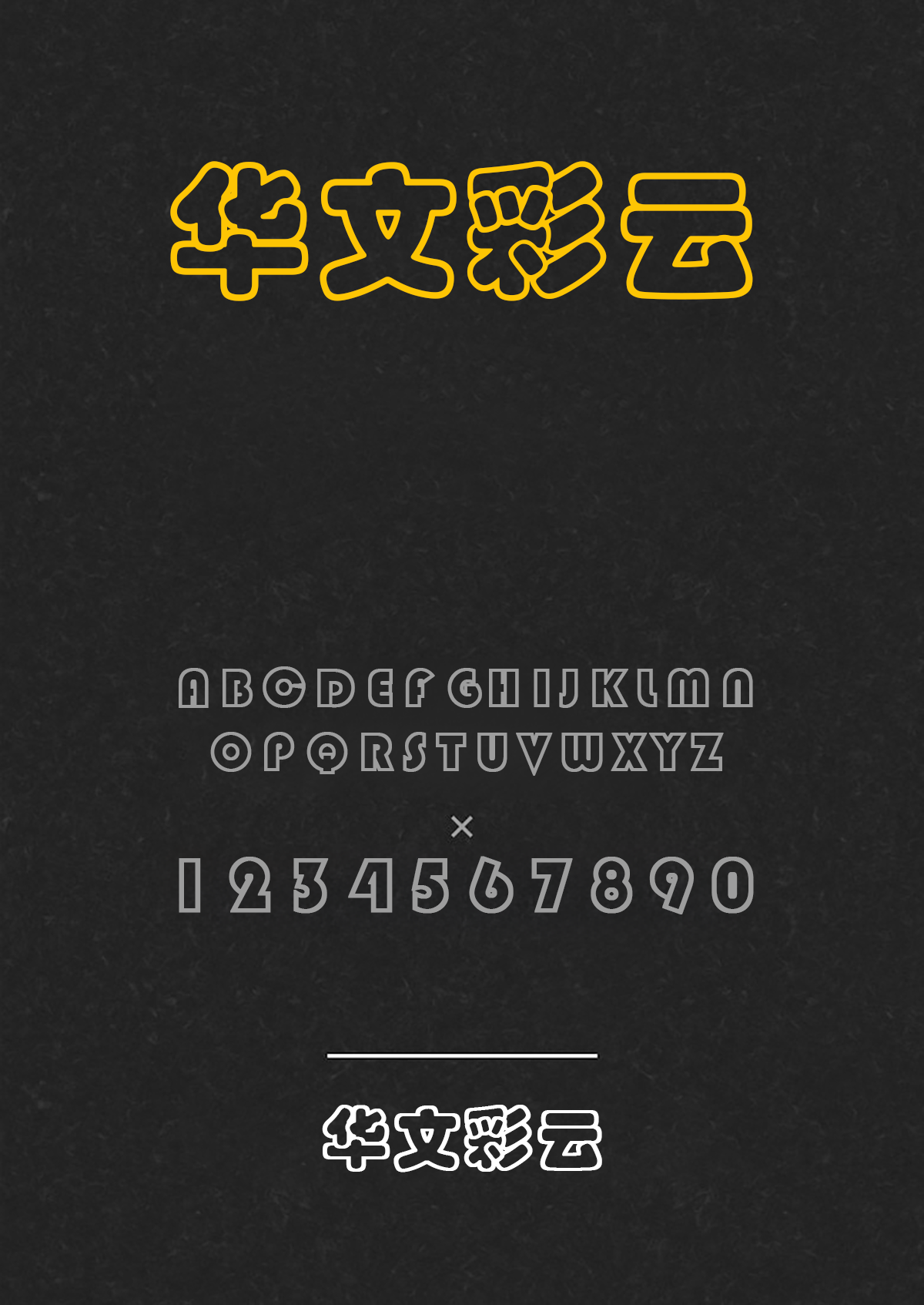 华文彩云是华文设计推出的一款在艺术设计方面使用的字体,华文彩云字体中间呈空心状,与普通字体相比华文彩云字体拥有更加强烈的艺术个性,华文彩云字体的特点是由柔滑的曲线围成,笔划空心,状似云朵。华文彩云字体是根据华文琥珀体制作的空心版本,虽然中间的空心部分无法进行上色,但是在windows系统和安卓系统中却是非常重要的一款字体。