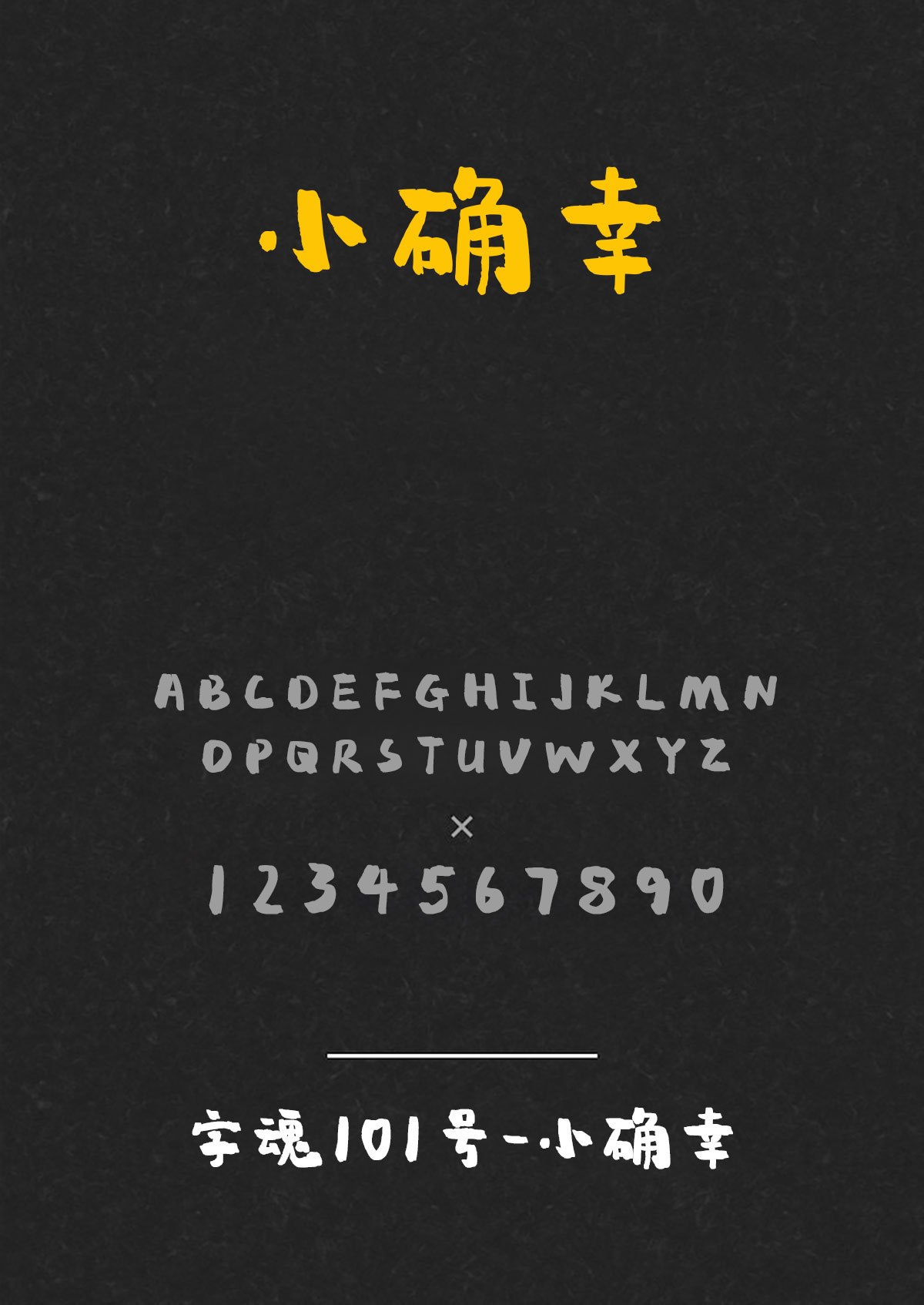 字魂101号-小确幸是由字魂出品的艺术字体,这款字体笔触粗细适中,书写圆润可爱,适合应用于艺术设计、平面宣传设计、网页设计,书法字帖等领域。
