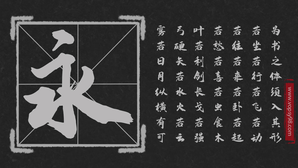 该字体包含6763个中文、字母、 符号和数字,是潇洒飘逸大气中国风毛笔书法字体,笔锋婉转苍劲有力,充满了江湖的侠义之气,而且易读性也很强。