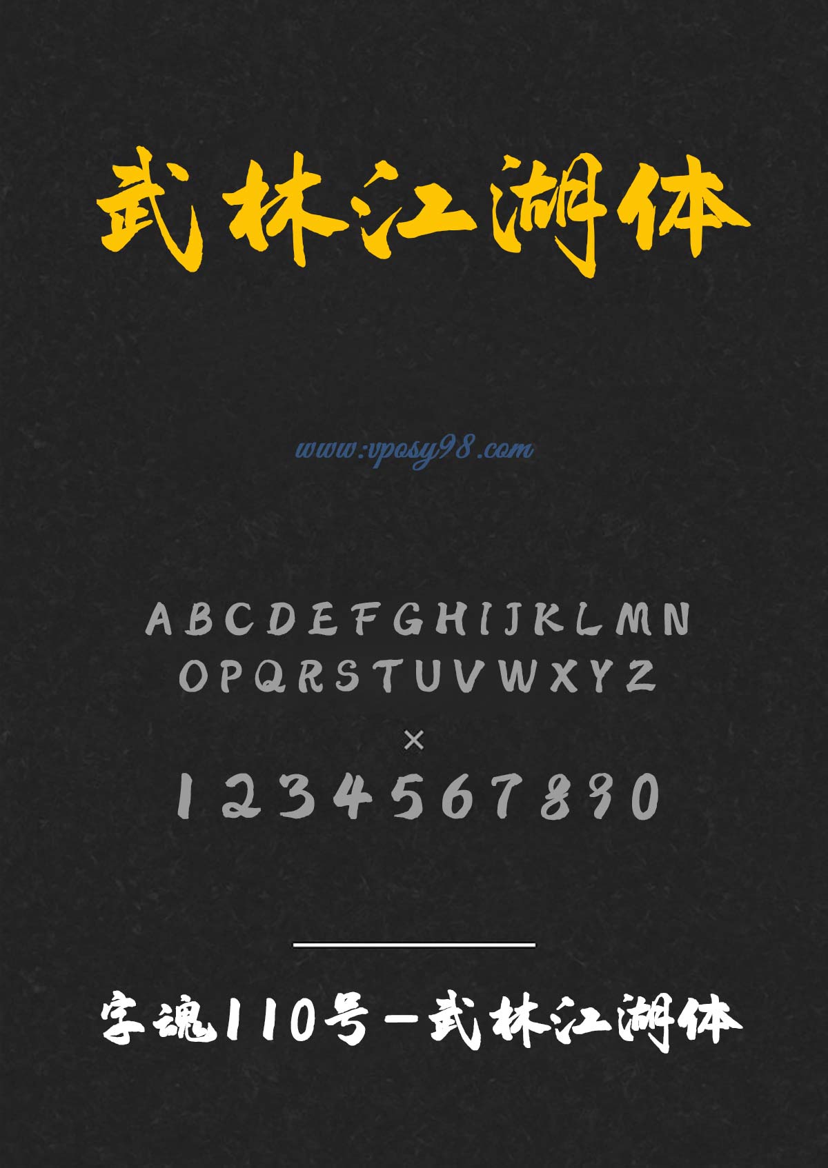 字魂110号武林江湖体的字体特性与名字完全符号,给人一种饮马江湖的快意感觉,飘逸自由、非凡洒脱,充满奔放的元素,中国风气息浓厚,可以应用于电商、游戏、影视等领域。