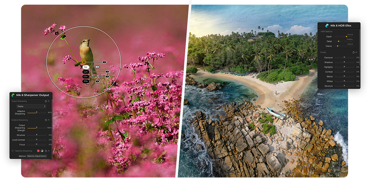 Nik Collection 是一个由8个强大的图片编辑插件组成的套件,用于adobe photoshop、Lightroom和DxO PhotoLab,帮助摄影师将他们的图像提升到一个新的层次。这些插件使各种各样的效果可以快速而轻松地应用到图像中,例如,出色的黑白转换、吸引人的颜色调整和创造性处理,以及此版本中的新功能,全面的几何校正。新的非破坏性模式允许您将图像导出为TIFF文件并调整编辑,同时保持原始图像的安全性和可逆的调整。 Collection 是来自 Adobe Photoshop、Lightroom 和 Aperture 的最佳插件制造商之一的最完整的插件集合。使用这些插件,您可以调整数码照片中的图像清晰度、执行色彩校正、修饰、造型、消除照片中的任何类型的噪点、亮度、调整照片中单个对象或区域的对比度和色彩饱和度.