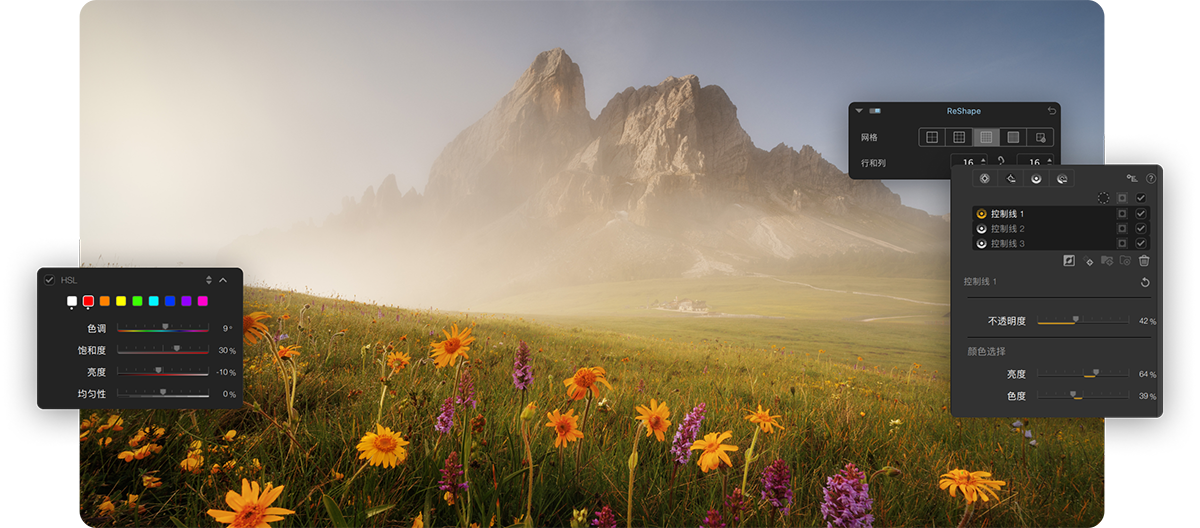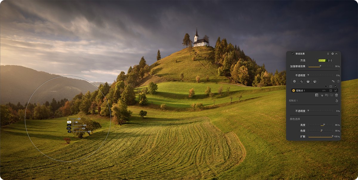 – 强大的选择性U点工具,用于快速微调对比度、阴影、结构和饱和度调整。