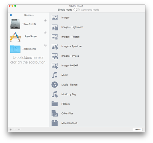 Tidy Up 5带有一个叫做简单模式的搜索模式,其中包括80多个预定义的智能搜索。