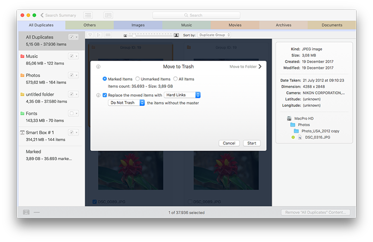 Tidy Up 5是快速和准确的。它不对扫描的卷进行索引,所以你不会浪费额外的宝贵空间。