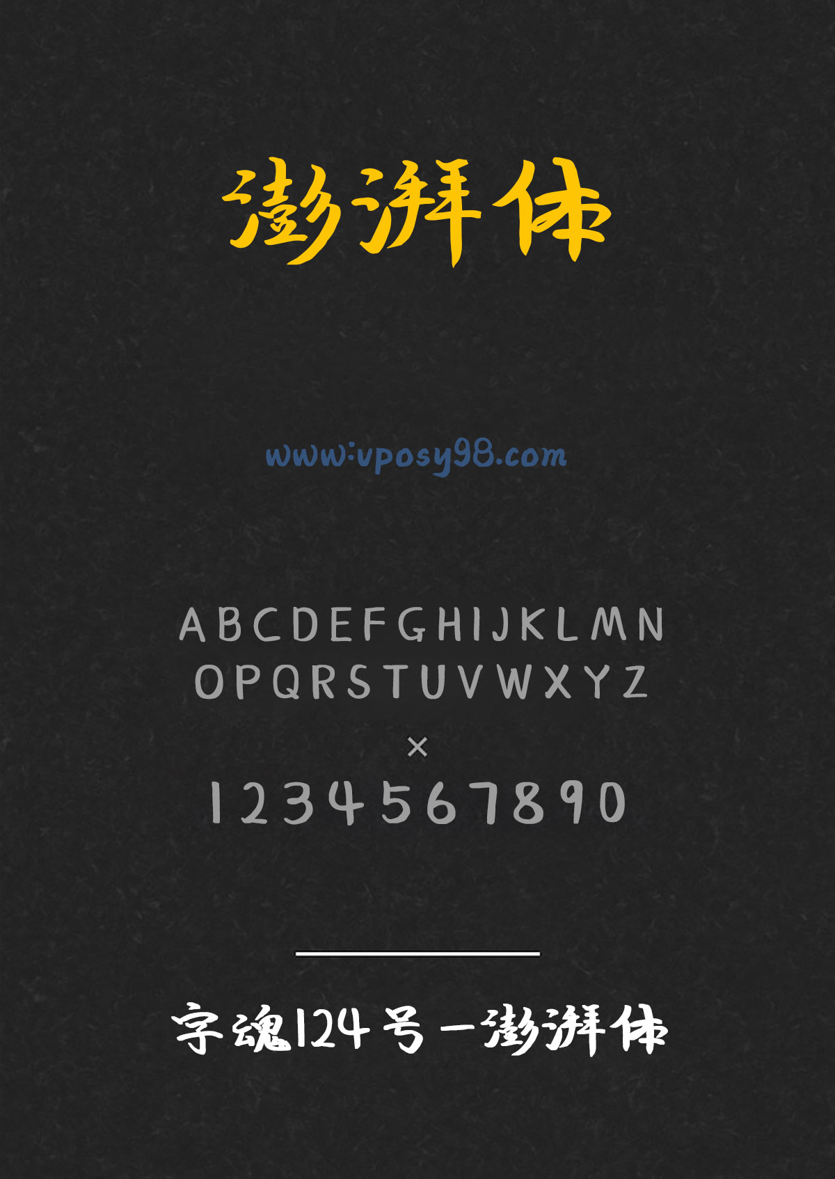 字魂124号-澎湃体是一款手写中文字体。字体笔画潇洒飘逸,字形弯长,笔触粗旷。字中带有少许装饰,笔画中随机的自然设计使字体之间均衡组合,形成对比,字体部分笔画加入了连笔,运笔灵动、形态多变,笔画显得更加的自然流畅。