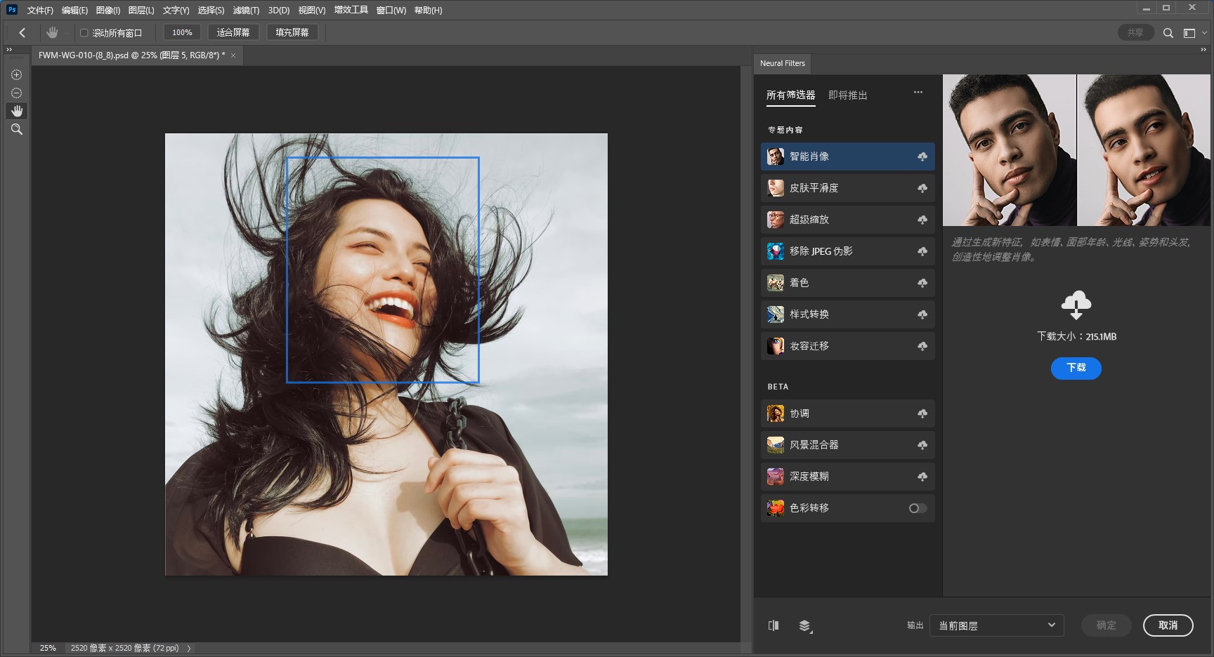 ps v25.0支持神经滤镜,需要登录ID账号(可免费申请)