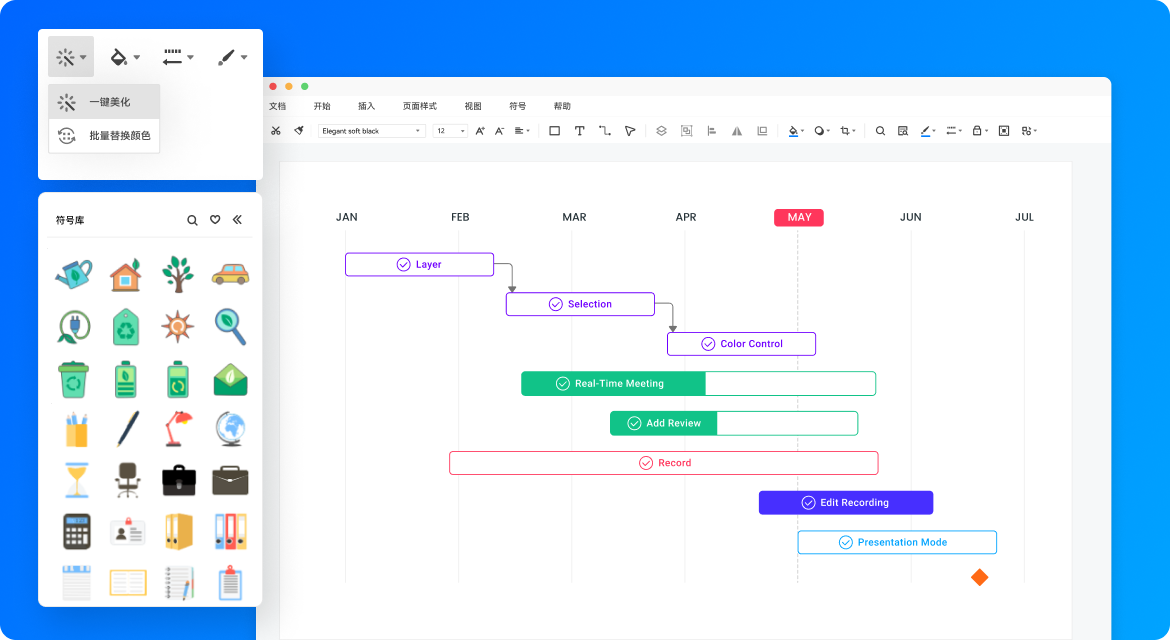 在EdrawMax中规划、可视化和呈现更好的结果。使用类似Microsoft的界面、拖放功能和专业模板资源快速入门。凭借280种图表解决方案,您和您的团队可以在工作流程的每个阶段使用EdrawMax。