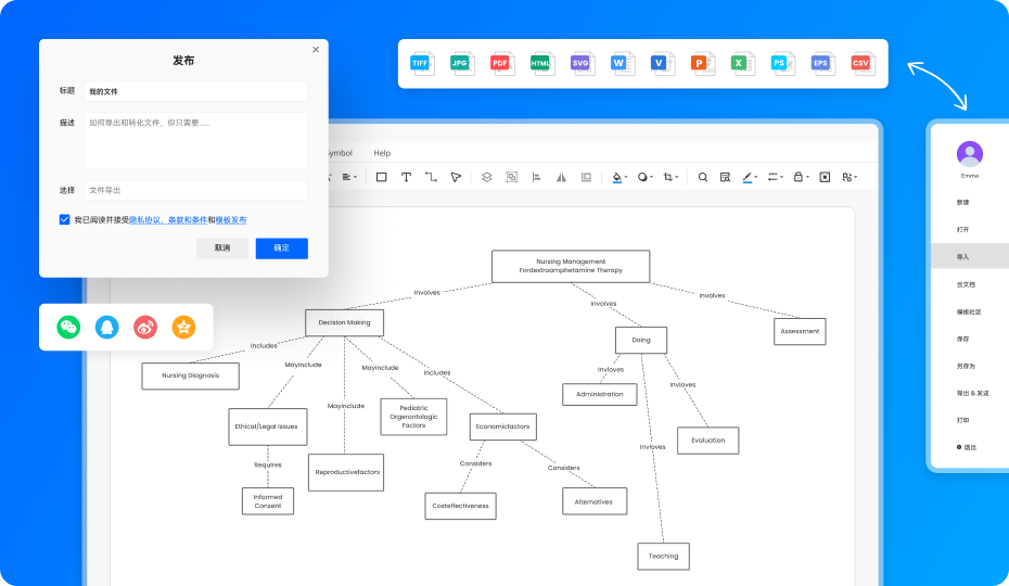 超过1500个内置模板和超过26000个符号,图表创作的灵感是不可阻挡的!此外,加入模板社区,从创新的人那里获得灵感。在任何地方、任何可共享的渠道,以任何文件格式共享您的工作并与您的团队协作。