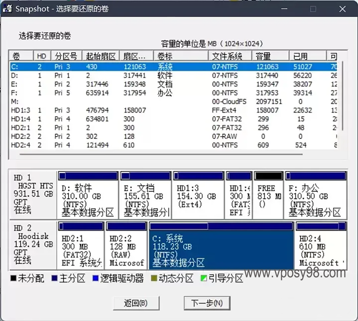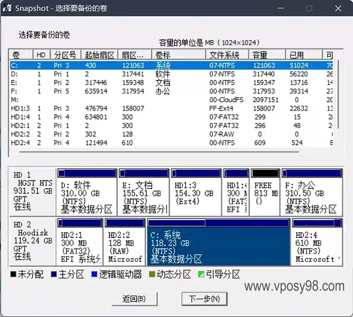 3.点击备份分区,选择你系统所在的分区(这里的分区指的是系统卷后的分区号!)