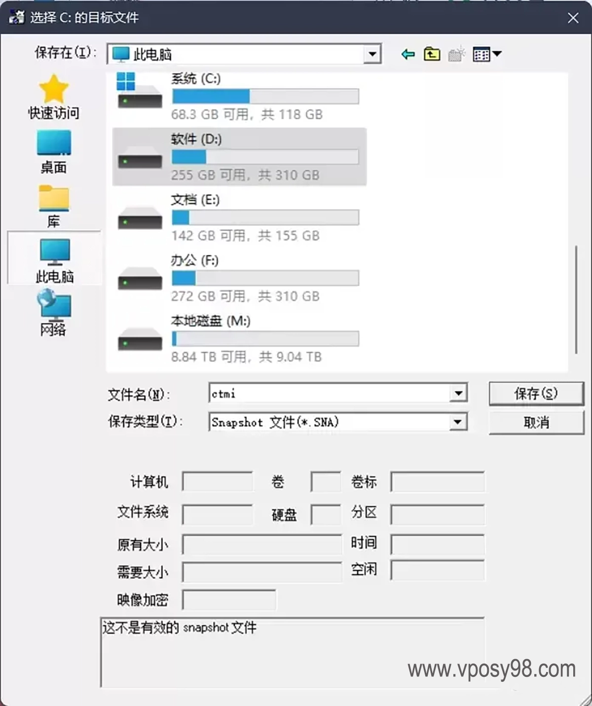 一款磁盘镜像工具,可以将磁盘中的所有数据备份到一个镜像文件中,以备系统故障时恢复。很小巧的工具,只是不能设置排除备份。