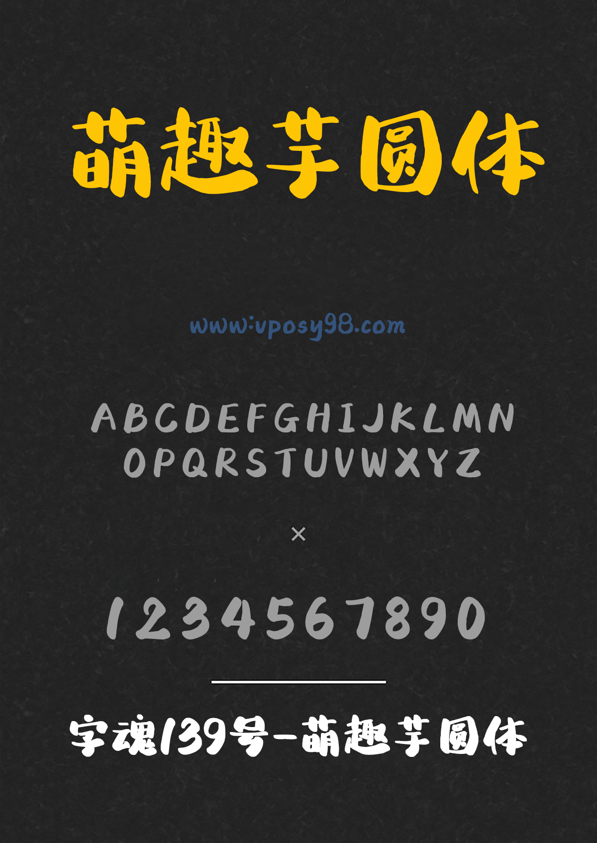 字魂139号-萌趣芋圆体是一款萌趣系列新派标题风格创意字体。该字体简化了笔画的书写形态并且夸大了笔画之间的对比,字形结构洒脱活泼,呆萌随意,非常的养眼。撇捺简单直接,笔画之间的粗细对比明显,横细竖粗,点笔画多数呈圆点状,字体整体上是由优美的弧线构成,没有尖锐的尖角和直线,折笔处和收笔处呈圆形。圆润的转折处,使得字体的整体造型丰满而不失可爱,适用于餐饮、食品类的广告和包装设计,以及游戏、影视的标题用字。