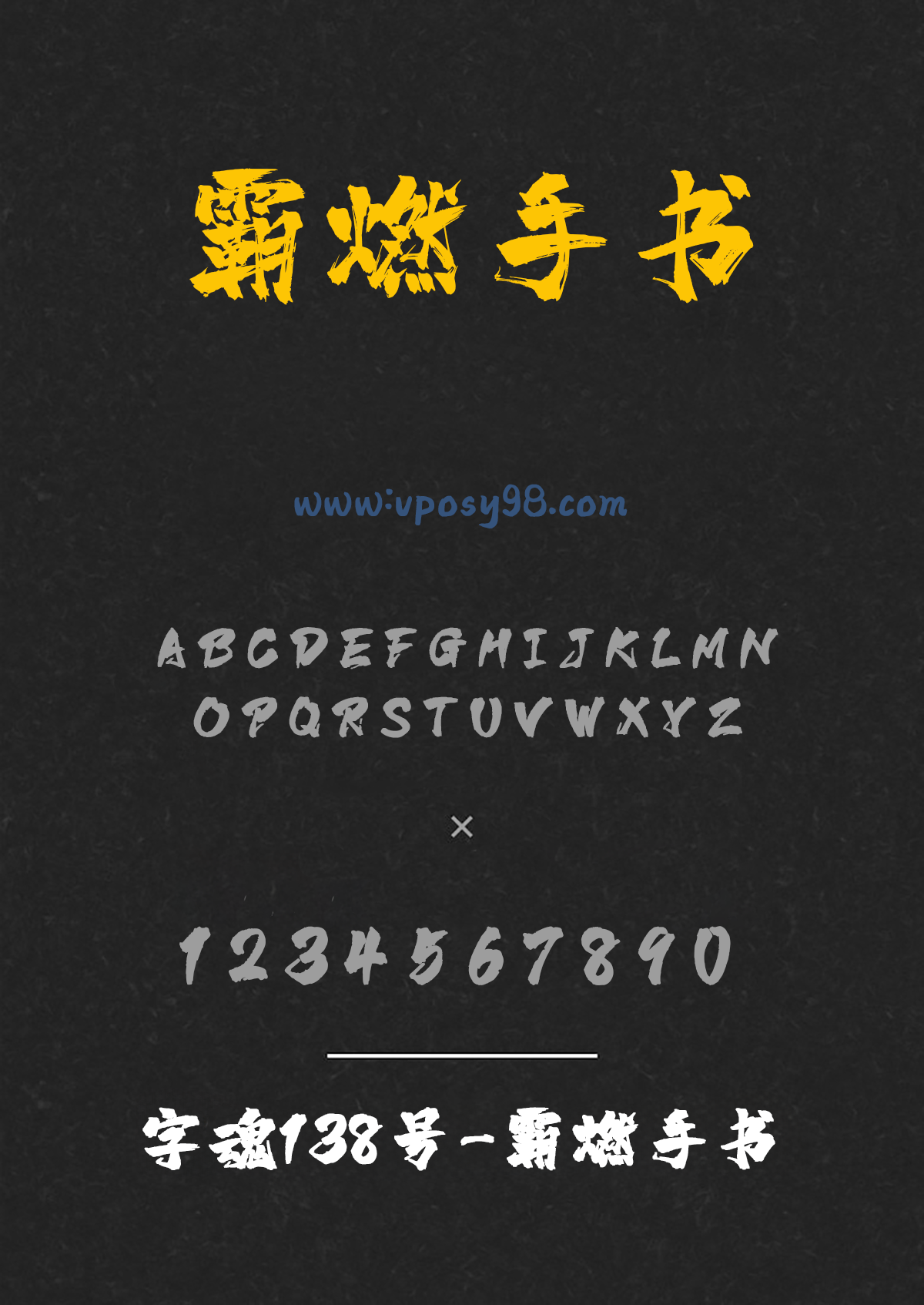 字魂138号霸燃手书字体将行书、楷书等字体的特征融合在一起,具有大气端正、洒脱的特性,字如其名,霸气外露,给人以强大的震撼力,适用于视觉设计、网页设计、影视宣传等领域。字魂最最最最受欢迎的一款国潮字体!独一无二的视觉特征营造出霸气感觉,手写书法感的保留与突破传统的设计感相结合,非常符合现在国潮主题!做古风图、国潮设计的不二之选!