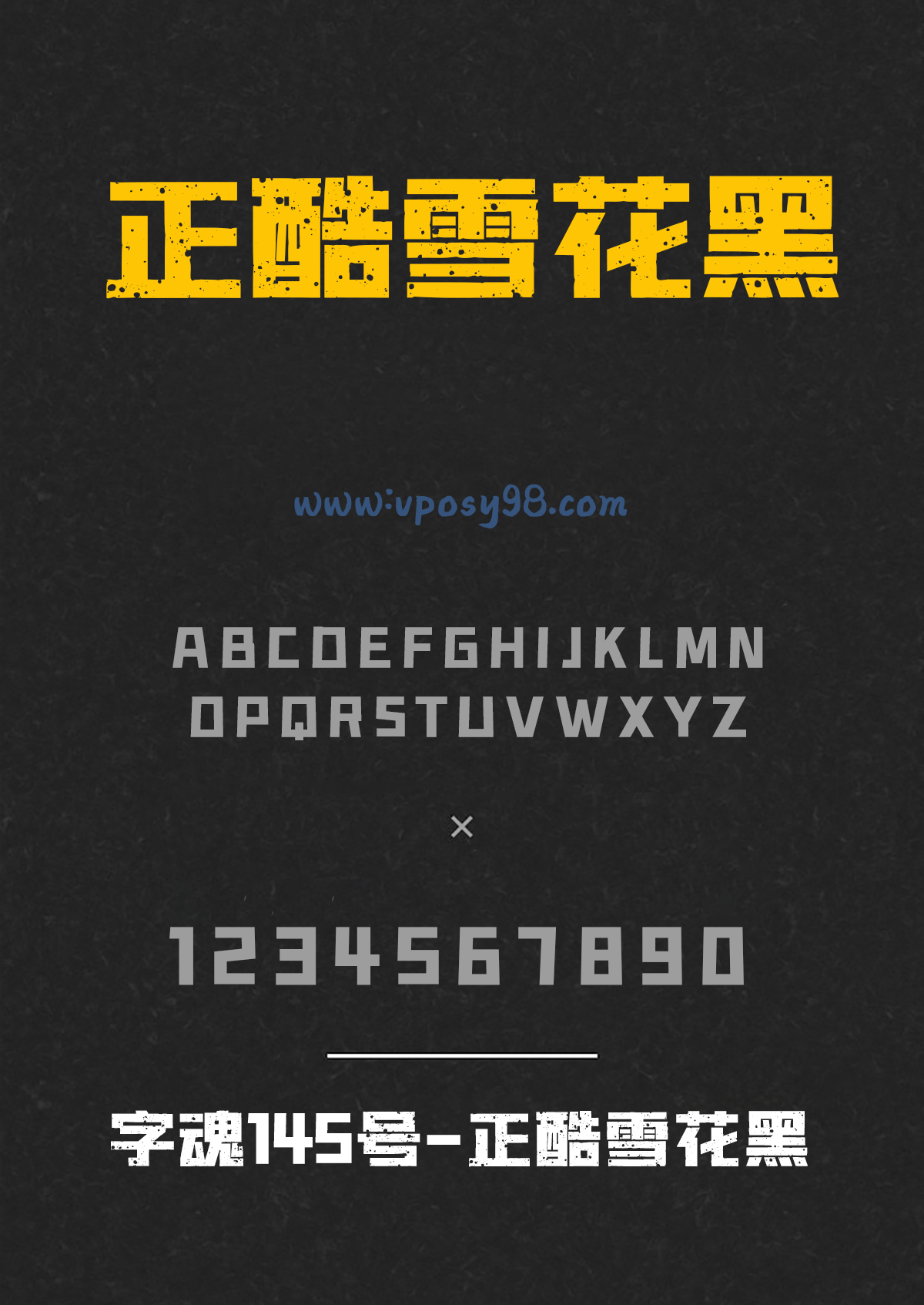 字魂145号-正酷雪花黑字体在黑体字的基础上进行做雪花效果处理,笔画张弛有度,清丽优美,整体效果更加出色,能够应用于文本装潢、电商店铺、网页设计、装潢设计、自媒体传播、视觉广告设计等应用场景,有直观的笔画设计,笔画的粗细全都是一致的,没有任何的衬线修饰,展示出粗壮有力的特性,具有鲜明的字体效果,在工作、生活中有着广泛的应用。