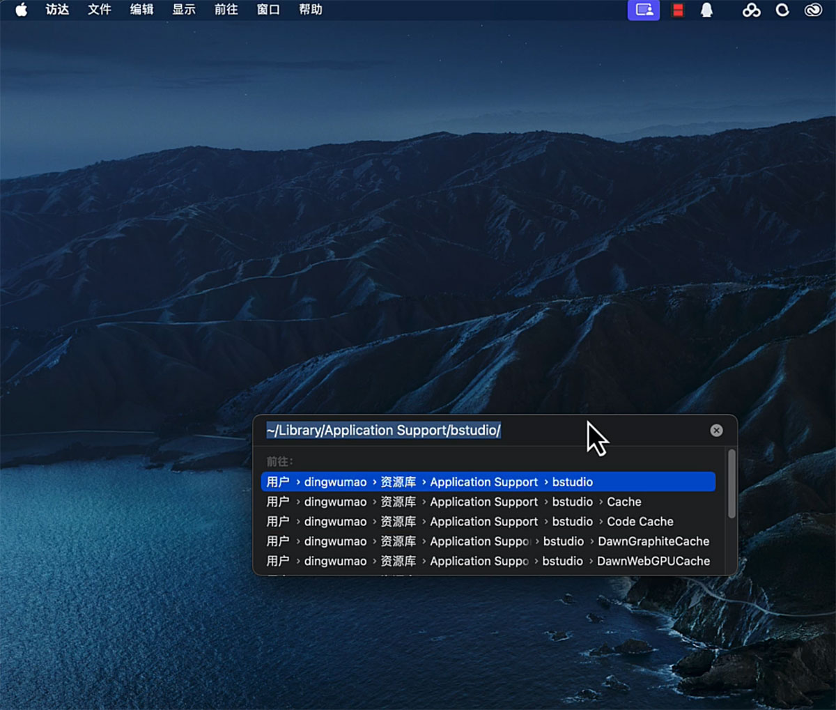 输入~/Library/Application Support/bstudio回车,进入到bstudio文件夹,如果没有新建一个即可