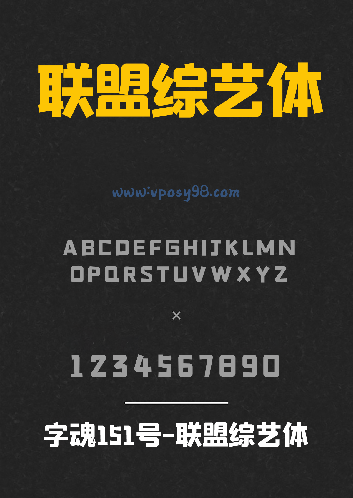 字魂151号-联盟综艺体字体是一款可商用的基础黑体字体,该字体包含6763个中文、字母、符号和数字,具有简约的风格,可以满足您设计上的各种需求,该字体主要用于招聘等场景。