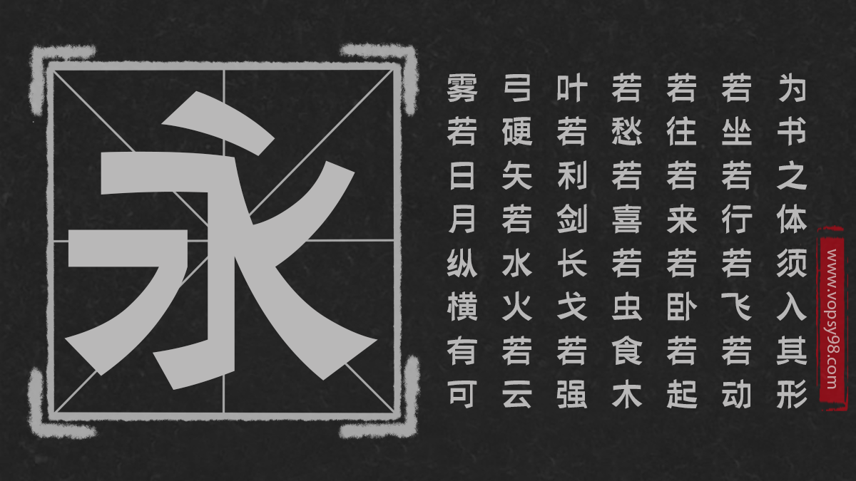 字魂154号-锐艺黑是一款文艺范十足的创意字,字体字形上把修长的部分变为扁方,上下收紧,左右舒展。运笔上也由缓慢变成短速,整体字形结构上略显扁方,笔画的粗细大小基本保持一致。整套字看上去,新颖独特,简洁有力。字体笔画在书写上横笔相对要长,直笔相对要短,整体结构显得略微宽扁,字体看上去大方、典雅,让人久看不厌。