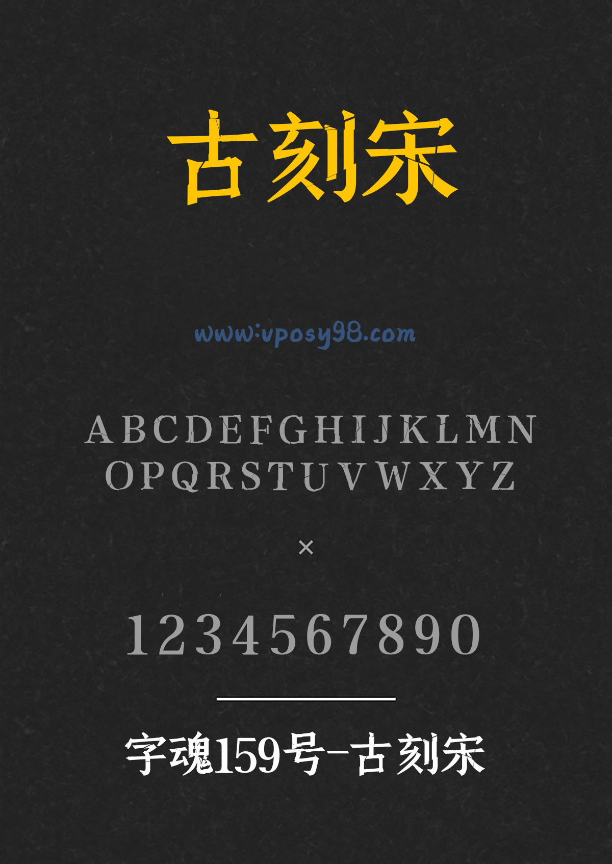 字魂159号-古刻宋 以行楷为基准,尽可能保留笔画的丰富性,比如粗细变化、相同偏旁部首的变化以及飞白的效果等。这套既符合传统书法的笔法与结构,又能具有视觉设计张力的书法标题字体,主要适用于广告、包装、影视剧的标题等。