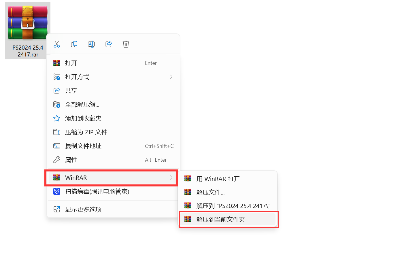 1、右键解压到当前文件夹(如果下载完成,不是压缩图标显示,显示白色或者浏览器图样,说明你电脑没有解压软件,自行安装解压软件)