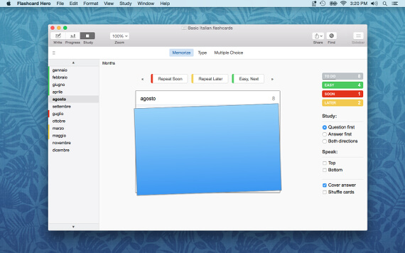 超越一般的词汇应用程序:我们为那些想要在每张卡片上放置多个单词的人制作了 Flashcard Hero。您可以添加图像、列表并使用文本格式来构建您的内容。当您添加更多文本时,卡片甚至会扩展,以便您可以在课堂上做笔记并在以后将它们变成学习卡片。所有套牌都可以通过网络轻松地与他人共享。