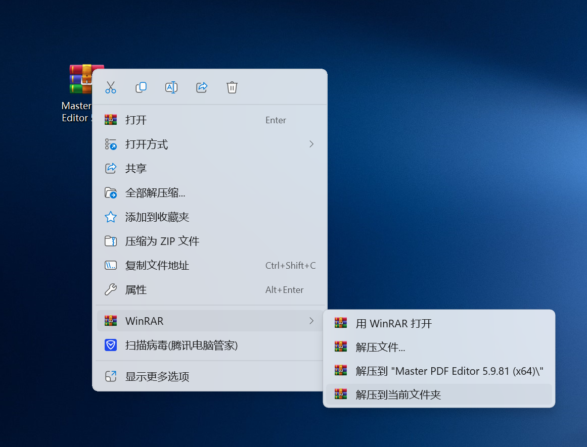 1、右键解压到当前文件夹(如果下载完成,不是压缩图标显示,显示白色或者浏览器图样,说明你电脑没有解压软件,自行安装解压软件)