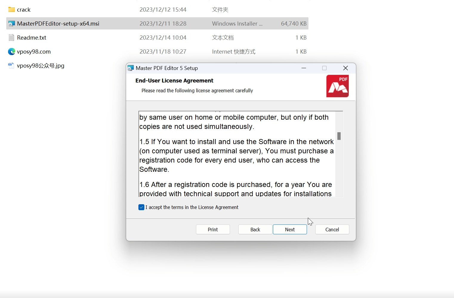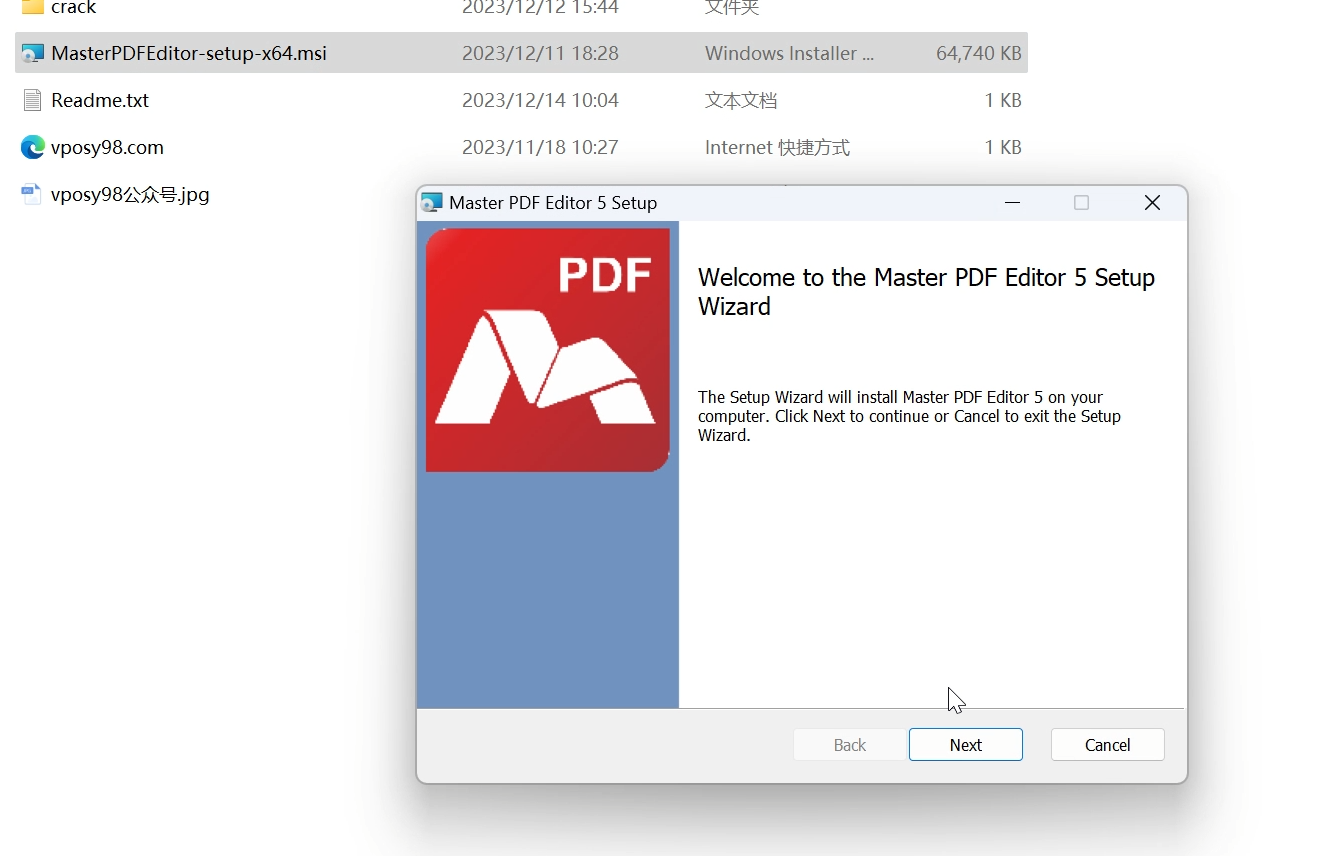 2、在MasterPDFEditor-setup-x64.msi双击 运行 点击Next (如下图)